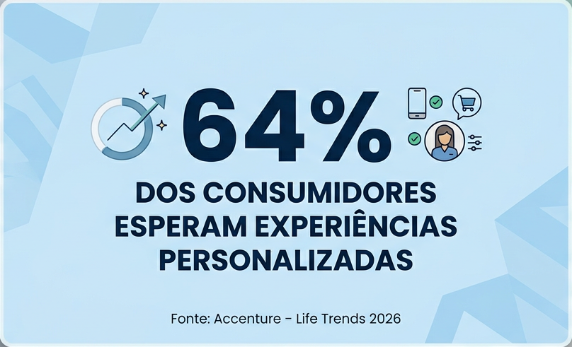 O comportamento já está mudando antes que as marcas percebam. De acordo com a pesquisa Life Trends 2026 da Accenture, 64% dos consumidores esperam experiências personalizadas, e uma parte crescente dessas experiências é mediada por sistemas de IA que fazem a triagem antes do contato humano.